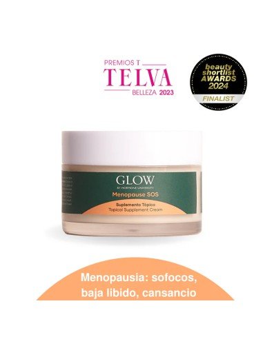 ¿Qué es GLOW Menopause Sos 50ml? GLOW Menopause Sos 50ml es una crema tópica 100% natural, diseñada para aliviar los síntomas característicos de la perimenopausia y la menopausia. Libre de hormonas, esta fórmula clínicamente probada incluye extractos botánicos como la raíz de Ñame Salvaje, Vitex y raíz de Malvavisco, conocidos por su capacidad para equilibrar las hormonas y aliviar sofocos, sudores nocturnos, fatiga, baja libido y cambios de humor. Glow Menopause SOS te ayuda a atravesar esta etapa de forma más cómoda y natural, con una aplicación sencilla y efectiva. ¿Cómo se aplica? Modo de empleo GLOW Menopause Sos 50ml Toma una cantidad del tamaño de una almendra de Glow Menopause SOS entre los dedos. Aplica mediante un suave masaje circular en el bajo abdomen, la cara interna de los muslos y/o las muñecas. Masajea hasta que la crema se absorba por completo. Úsala diariamente para obtener mejores resultados. Tip: Ajusta la cantidad según la intensidad de tus síntomas y escucha a tu cuerpo. Solo para uso tópico. Dura aproximadamente 30 días con uso diario. Propiedades y Beneficios de GLOW Menopause Sos 50ml Equilibrio hormonal natural: El Ñame Salvaje y el Vitex ayudan a aliviar síntomas como sofocos, sudores nocturnos y cambios de humor. Relajación y confort: El masaje con la crema produce un leve efecto de calor calmante. Mejora de la libido y energía: Apoya el bienestar general durante la menopausia y la perimenopausia. Ingredientes 100% naturales: Su fórmula botánica asegura una alta eficacia sin dañar el intestino. Absorción suave y continua: Ideal para un alivio prolongado y sin molestias. INCI Aqua, Helianthus annuus (Sunflower) Seed Oil, Olea Europaea (Olive) Husk Oil, Dioscorea villosa (Wild Yam) Root Extract, Caprylic/Capric Triglyceride, Polyglyceryl-3 Sorbityl linseedate, Althea officinalis (Marsh Mallow) Root Extract, Beeswax, Vitex agnus castus (Chastberry) Extract, Vanillyl Butyl Ether, Lavandula angustifolia (Lavender) Flower Oil, Benzyl Alcohol, Dehydroacetic Acid, Tocopheryl Acetate, Coumarin, Limonene, Linalool.